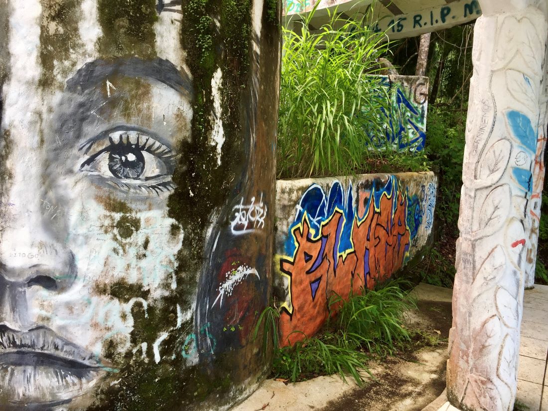 Amazing graffiti of a face on the wall of an abandoned house in Costa Rica