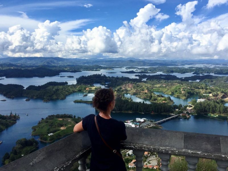 Marveling at Piedra de Penol in Colombia (later on the trip) | Photo courtesy of Amber Parle