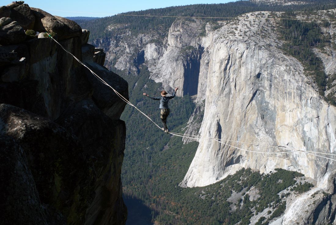 When I visited Taft Point, I was fortunate to see a group of people tightroping across a nauseating sheer drop. They had set up the rope and equipment themselves, all at an elevation of 7,500ft!
