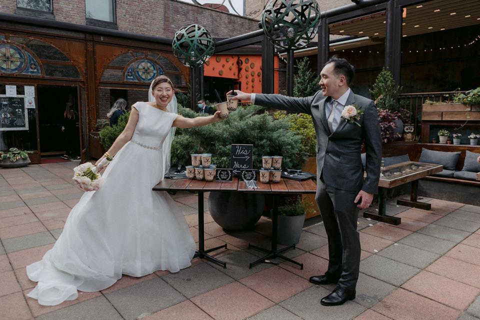 With smaller, more intimate weddings, canned cocktails and wines became increasingly popular, as some couples even opted out of having a bartender and instead chose to offer coolers full of beverages. And it looks like the trend is here to stay. “Whether you’re looking for a Manhattan, margarita, old-fashioned, anything, many are finding that the canned version not only keeps the cost and cleanup down, but still maintains the quality of its namesake cocktail,” says Kim Hedmark, Head of Drizly’s White Glove Wedding Service. “If cans aren’t your style, you can still stock up on them behind-the-scenes and make your bartender’s life (and the bar lines) much easier.”