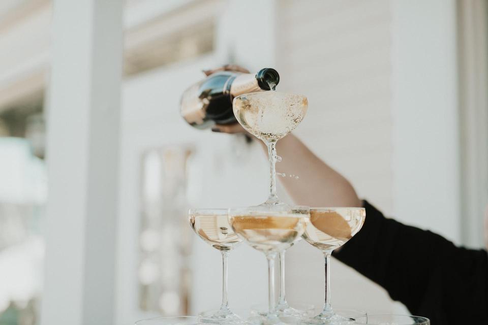Some of the cocktails your grandparents enjoyed, and probably served, when they had their own wedding are back in action today, according to Leitch, as requests for older, more traditional or classic cocktails are rolling in. “Wedding parties have started asking more frequently for drinks such as French 75s, Bushwhackers, Palomas, and Old Fashioneds as an easy way to add a dynamic element into their catering presentations with some class,” he says. “Champagne towers have also been making a comeback as well, and are becoming a favorite way to add a vintage touch to a reception.”