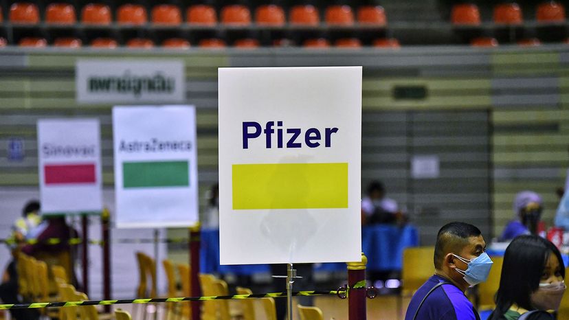 COVID booster, Bangkok“People wait to receive doses of various COVID-19 booster shots inside a stadium in Bangkok on Jan. 8, 2022. LILLIAN SUWANRUMPHA/AFP via Getty Images