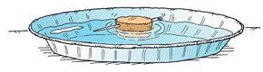 Fill a pie pan with water. Add a small amount of dishwashing liquid.