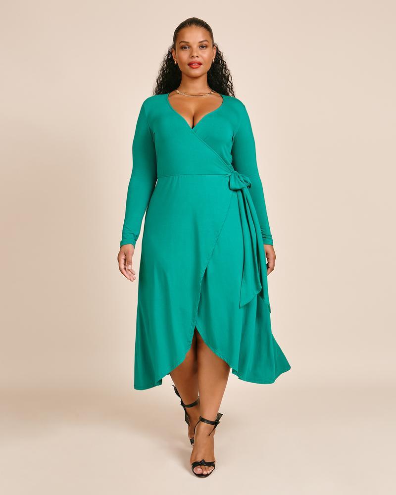 Wrap dresses are known for being universally flattering. For proof, look no further than this long-sleeve emerald green style from 11 Honoré, one of our favorite spots for size-inclusive and plus-size options. It has a faux-wrap bodice and an A-line skirt that was made for twirling.