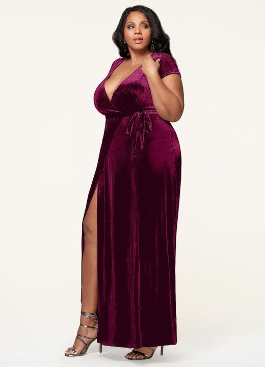 Luxe velvet fabric and a timeless wrap silhouette are always a winning fashion combination. This maxi dress has short sleeves and comes in five different jewel tones, making it a gorgeous engagement party outfit idea for fall and winter celebrations.
