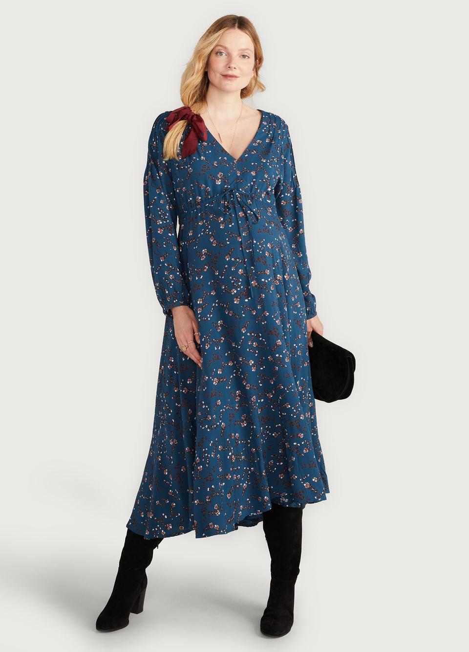 Expectant moms-to-be, we haven’t forgotten about you. This comfortable maxi dress proves that maternity style can be just as chic. The blouson sleeves, adjustable waist, and high-low hem guarantee you a spot on the best-dressed engagement party guest list.