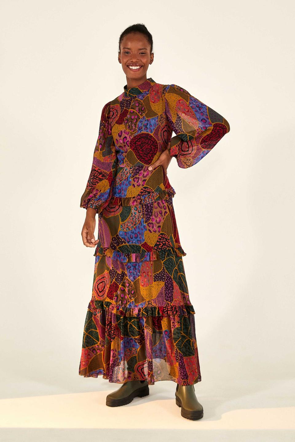 People tend to stick to dark colors in the fall and winter, but you don’t have to. This gorgeous, vibrantly printed maxi dress is cold-weather appropriate, thanks to the high neck and long sleeves. Style it with a belt to highlight your waist.