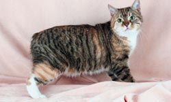 A native of the Isle of Man off the British coast, the Manx is known for being the cat without a tail, though it can in fact have a tail or short stub. The Manx comes in both short- and longhaired varieties. It generally has a full, round face, short front legs and long hind legs. Sometimes the Manx look like it’s sticking its butt up in the air, or as if it’s ready to pounce, but this is a friendly cat.