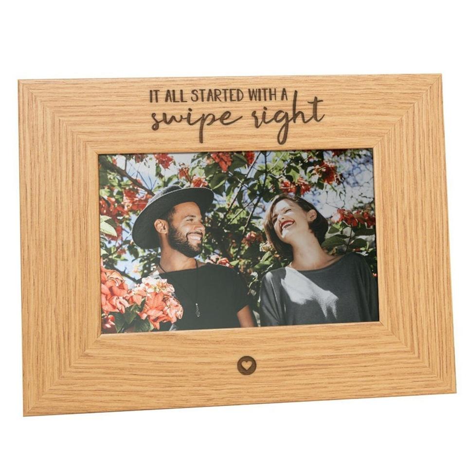 If you and your partner met on a dating app, this picture frame is a fun first Christmas gift. Add a snapshot from a favorite moment to create a cute DIY present.