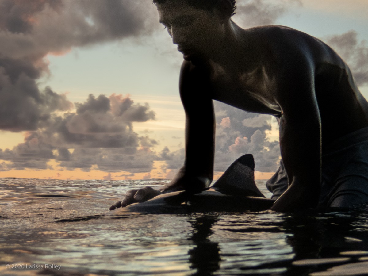 For example, I learned that sharks have an important place in Polynesian myths of creation. Today, the shark is honored and often represents the protective spirit of a family ancestor that reincarnated. This led to me shooting this mythic image where powerful male Gods hold magical abilities to connect with nature, allowing them to play with animals under a magnificent, mystic Polynesian sky.