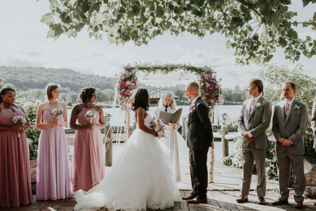 There are many ways to go about the process of how to find a wedding officiant. Unless you know your chosen officiant well, be sure to check out the credentials of those you may consider. Lehman suggests seeking out the references of other couples who’s this person officiated. And remember that unlike other wedding vendors, your officiant has a legal role to play on your big day. “Make sure that they have the necessary licensing from their local community, and the state of residence,” she adds. “Too often, I hear stories about how an officiant performed a ceremony, and then the marriage license was not considered valid by the clerk’s office since the person was not legally registered in their state.” Also, ask if the officiant has any advanced training or academic degrees in their field. The latter is not always necessary, but can be an asset. Be sure to use WeddingWire’s wedding officiant finder to read reviews of officiants in your area.