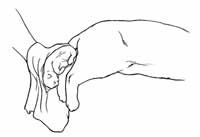 Step 2: Applying steady traction, gently pull the kitten at a slight downward angle. Continue pulling gently and steadily until the kitten is delivered.