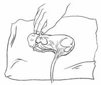 Step 3: Continue to pull the membrane from its body. The membrane will collect around the umbilical cord. Do not pull on the umbilical cord.