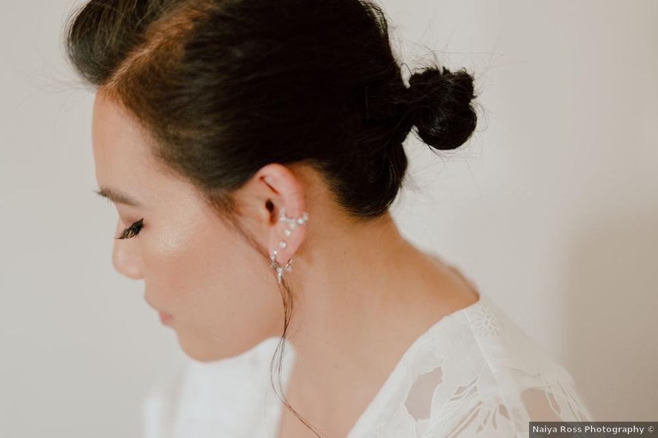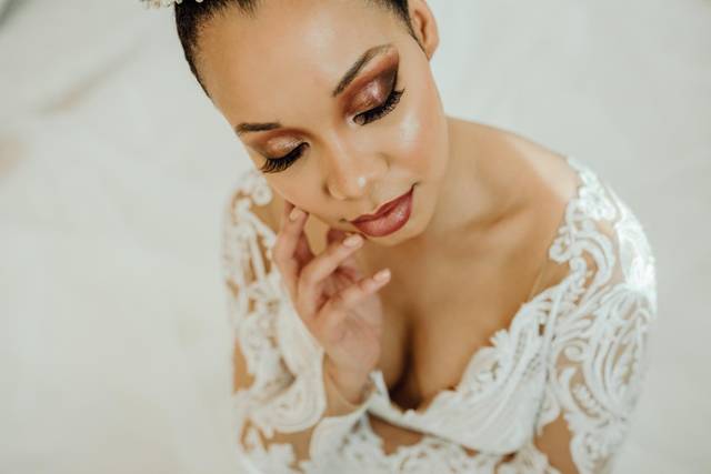 For example, being based in Miami, she has dealt with endless humidity and heat. “For a bride that wants a dewy fresh look, I can’t apply a luminous dewy foundation,” she said. “I have to play with the right primers and always include some type of mattifying products or else my bride won’t look fresh and dewy—she’ll look oily and extremely shiny (not ideal for photos and video of your special day).”