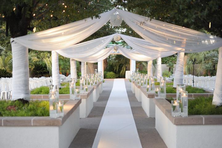 Nestled among the skyscrapers, hotels and bustling shopping centers along the Strip, you’ll find the Venus Garden at Caesars Palace. This peaceful garden, appropriately named after the Roman goddess of love, is an ideal ceremony location if you’ve been dreaming of a romantic outdoor Las Vegas wedding. The Venus Garden is surrounded by tall palm trees and landscaped flowers, guaranteeing maximum privacy and a beautiful backdrop for your wedding day. Roman-inspired architecture, including an arched temple at the altar, brings elegant European flair to the garden. The Venus Garden is spacious enough for 114 guests and also features a fountain and koi pond.