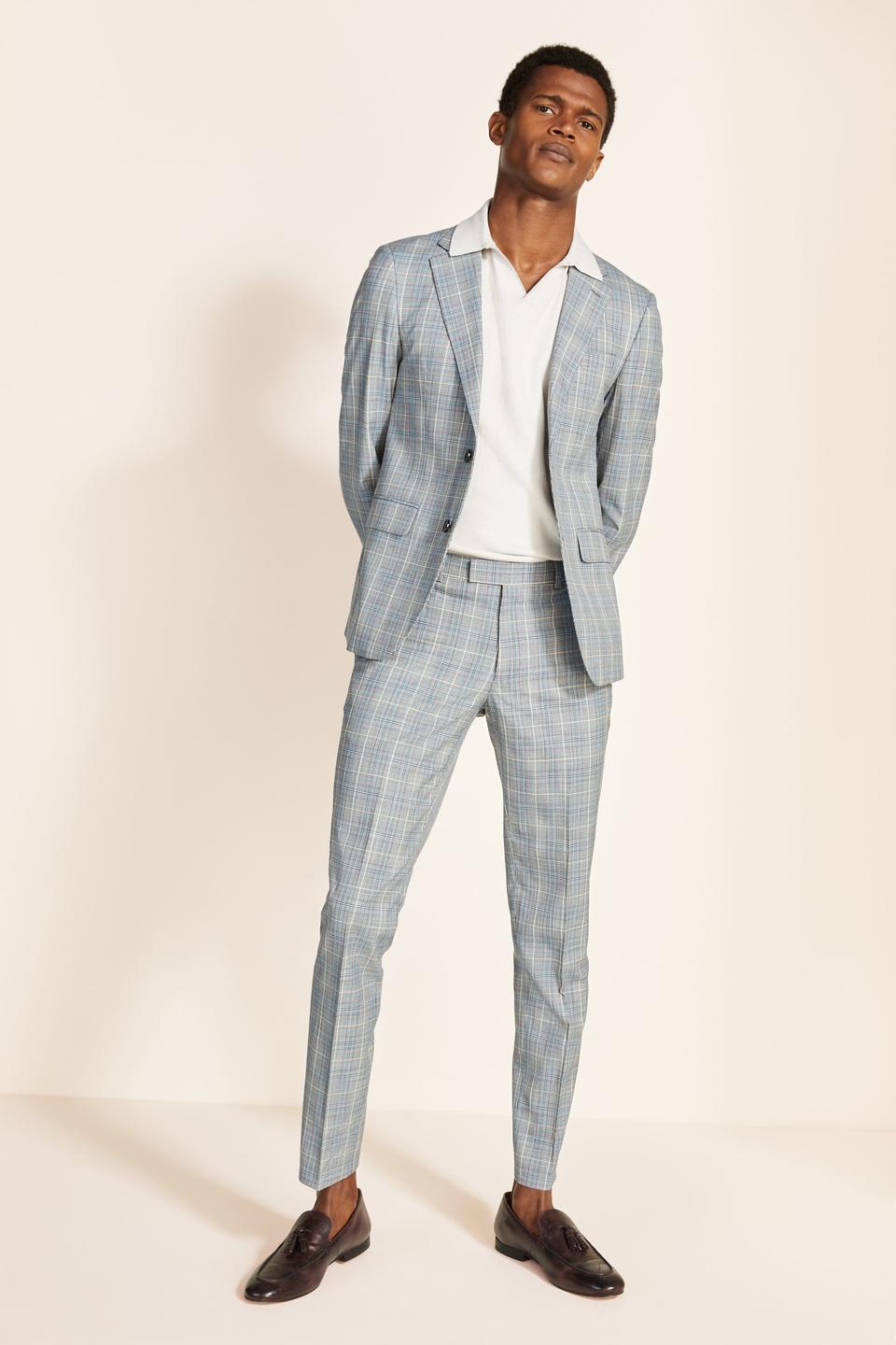 A two-piece suit is more versatile than you might think. Depending on the shoes and shirt you pair it with, it can pass for both casual and semi-formal attire. The light hue of this plaid ensemble makes it a great rehearsal dinner outfit for spring and summer.