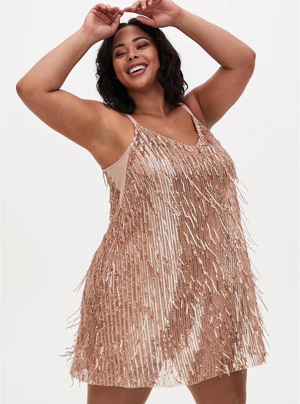 When deciphering the rehearsal dinner dress code, take a cue from the wedding’s overall vibe. If the couple’s big day is set to be glamorous or Gatsby-inspired, this sequin fringe number is a stylish wedding rehearsal dinner outfit for a guest.