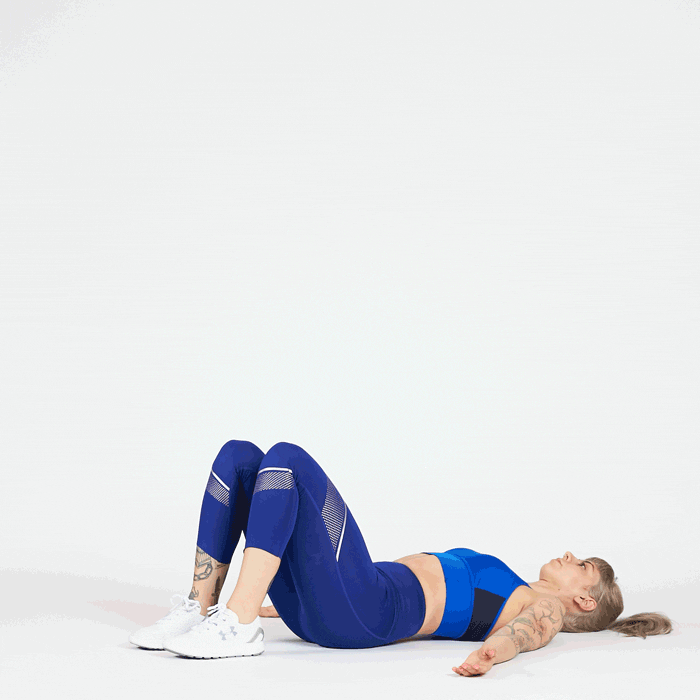 The move: Lie on the ground with your knees bent and feet flat on the floor. Drive through your heels and squeeze your glutes to push your hips up. Repeat. Do not use your lower back you pull yourself up.