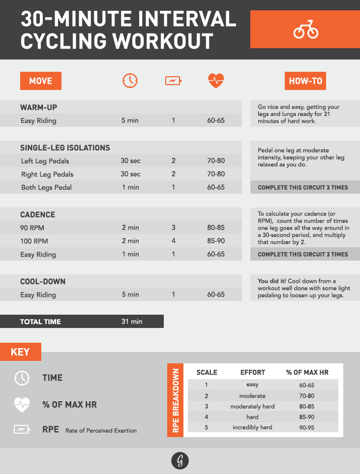 Designed with a flat course in mind, the workout will boost your pedaling efficiency and amp up your endurance, all in about 30 minutes.
