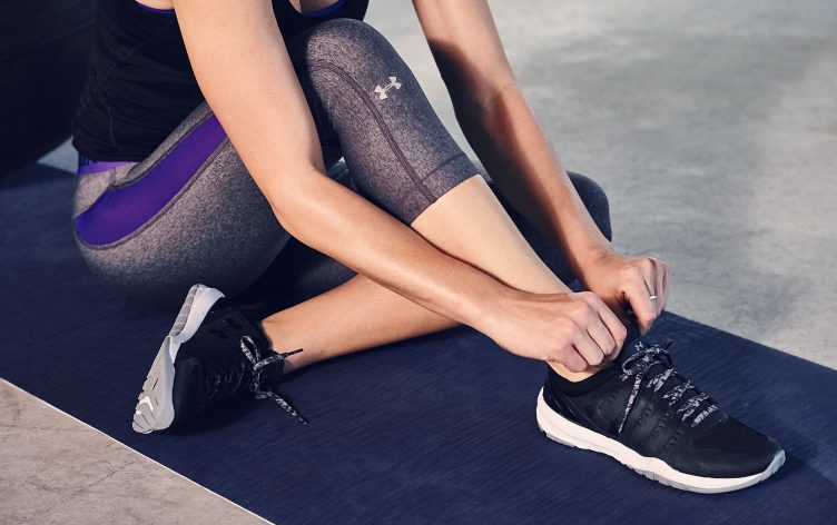 To properly activate your core muscles in this pose you want to imagine that you are bringing your belly button to meet your spine. By doing this you should feel your lower abs contract. You also want to make sure that your spine is long (no hunching!) without having your chest pop forward—so think about bringing your ribs in, too.