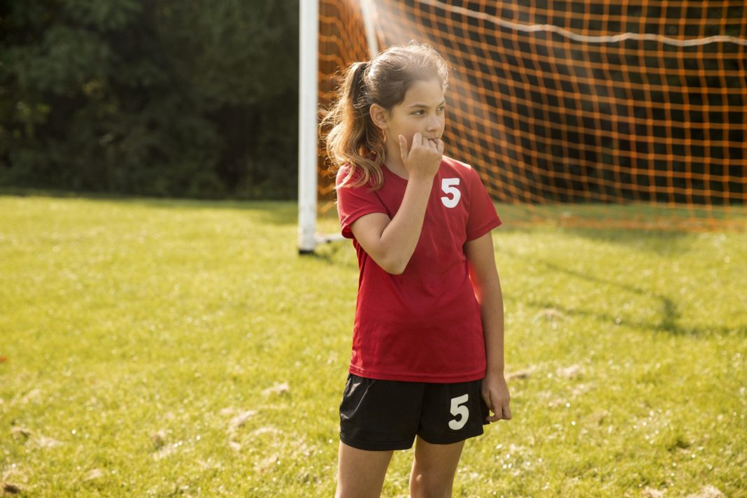 An image of a child biting her nails.