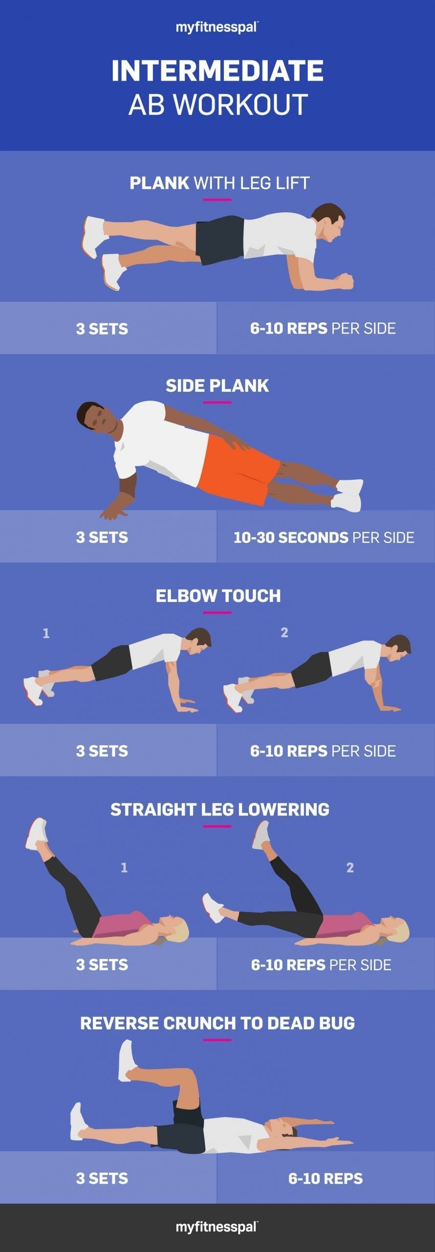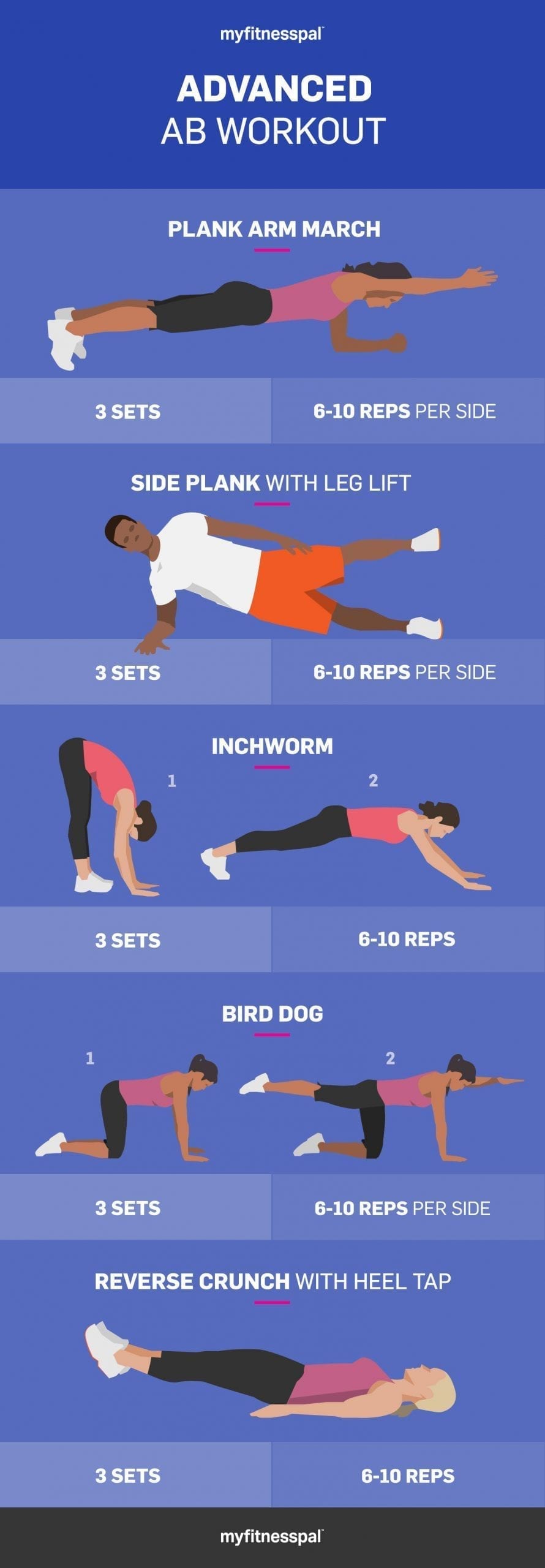 Technique tip: Brace your core throughout every exercise. Imagine someone is about to punch you in the stomach — that stiffening feeling is what your abs are meant to do. Also, inhale through your nose and exhale through your mouth with pursed lips to use your abs to their fullest potential.
