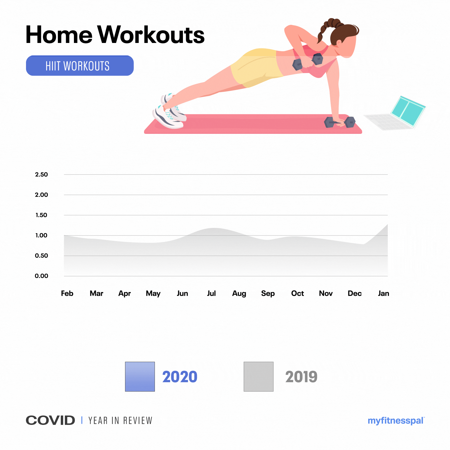 Desk and home workouts grew to new levels. With so many of us working — and working out — from home, we saw an uptick in HIIT and “desk workouts” as we tried to incorporate fitness into the workday.