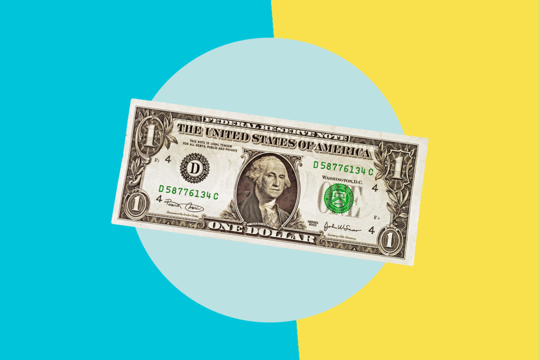 An image of money on a colorful background.