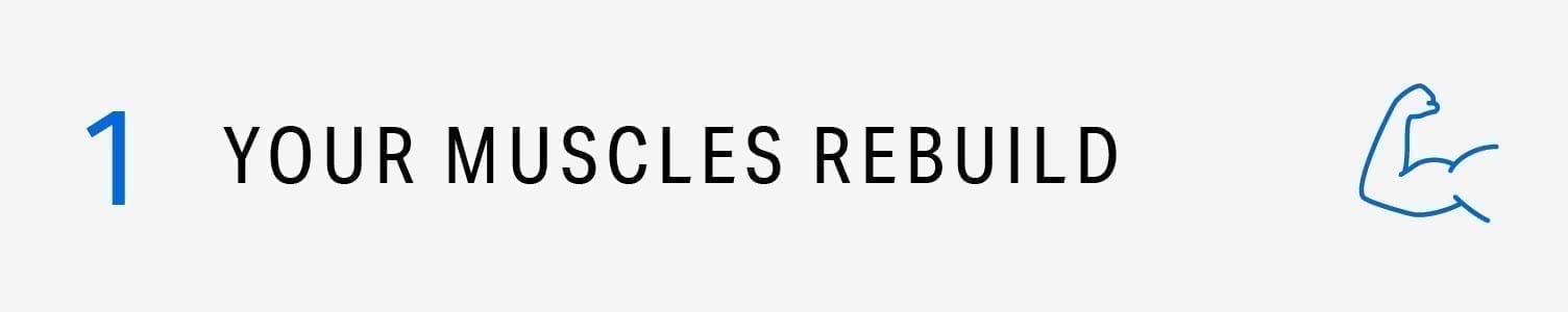“Your muscles are constantly in a state of either breaking down or building up,” explains physical therapist William Kelley, DPT, athletic trainer and certified strength and conditioning specialist. When you push your body during workouts, you essentially create micro-tears in your muscle fibers. In the 24–48 hours that follow, your muscles repair — and grow larger and stronger — through a process called muscle protein synthesis. (Your body uses the protein you eat to make this happen.)