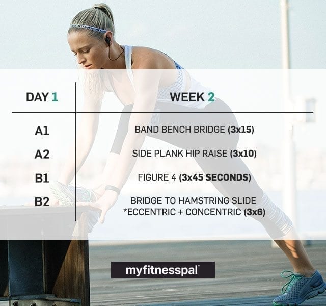 Day 4 focuses on the lower body, particularly the hips. On the days you don’t have a workout scheduled, you can always add a 15–30-minute walk, bike ride or run/walk once, twice or even three times a week. This is totally optional, of course.