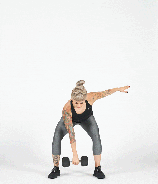 The move: While holding a dumbbell in your left hand, position your right hand and right knee on a bench or table with your left foot planted firmly on the ground. Ensure the spine is flat. Engage behind the left shoulder blade and lift the dumbbell up to the ribcage. Lower slowly and repeat.