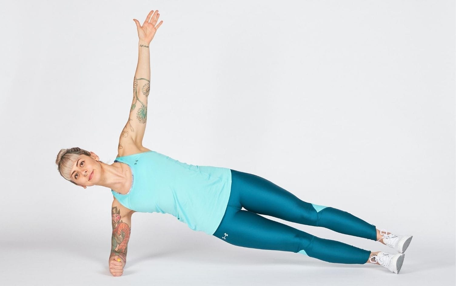 The move: Line your elbow up with your shoulder and your shoulder with your hip and heel. With a very tight and braced core, push the ground away from you, staying active in the shoulder joint. Reach your top arm under your body while simultaneously raising your hips. Return to a solid and straight plank position.