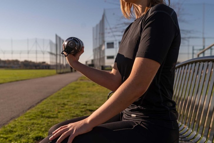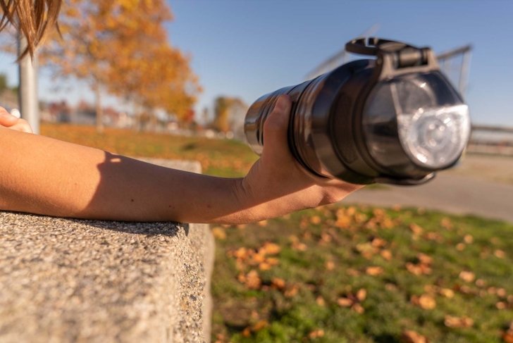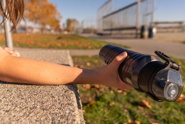 For this exercise, you’ll need a small dumbbell, a can of food, or a full water bottle.