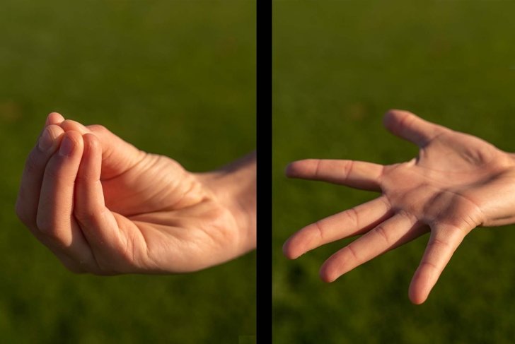 Cup your hand, touching all your fingers and thumb together. Stretch out your fingers and thumb as far as possible then return to the starting position. Repeat 10 times and do three sets.