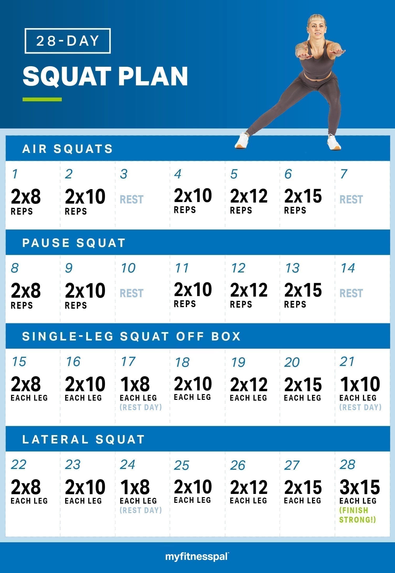 For a little direction, we put together a 28-day squat challenge to boost your lower-body strength and give you a daily sense of achievement.