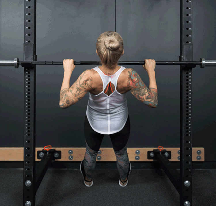 Set a barbell on a power rack or Smith Machine and, from underneath, pull yourself up and touch your chest to the bar. Pin your shoulder blades together and keep your body straight like a plank.
