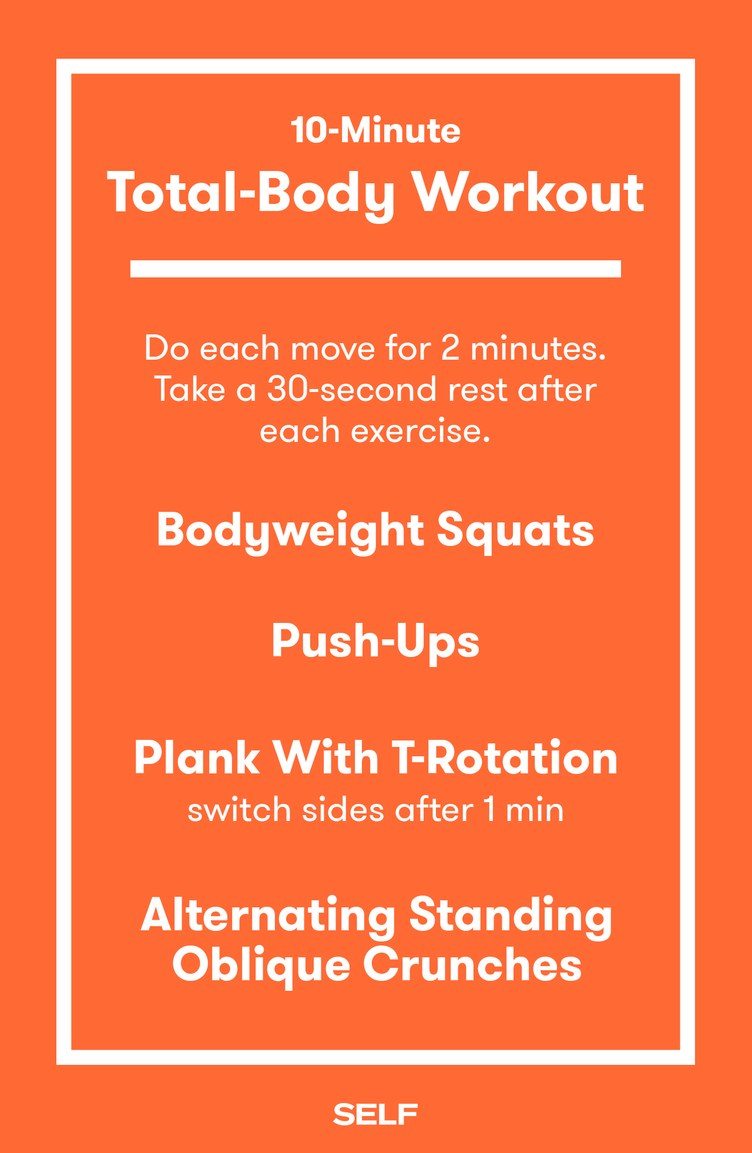 4. YOU CAN DO THIS 10-MINUTE TOTAL-BODY WORKOUT WITHOUT BREAKING MUCH OF A SWEAT.
