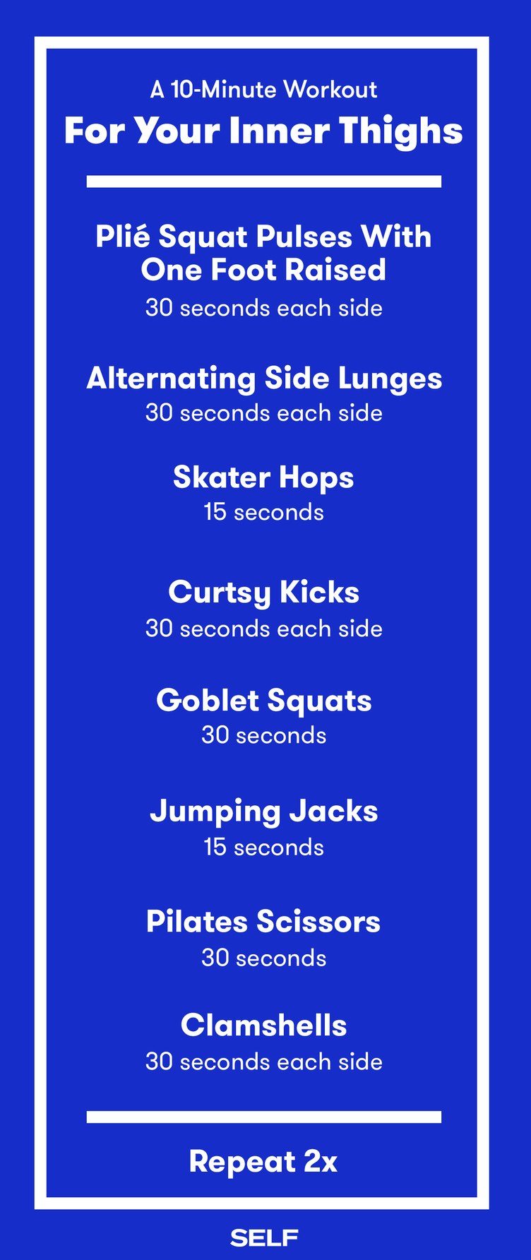 This workout from exercise physiologist Michelle Lovitt, M.A., will set your inner thighs on fire. Keep in mind that spot training is a fitness myth. If your goal is muscle definition or fat loss in a particular area, you’ll need to do a combination of strength training (both of that specific muscle group and everywhere else), reducing overall body fat, and eating a diet that contributes to body fat loss and muscle-building. With that disclaimer, get the full workout details.