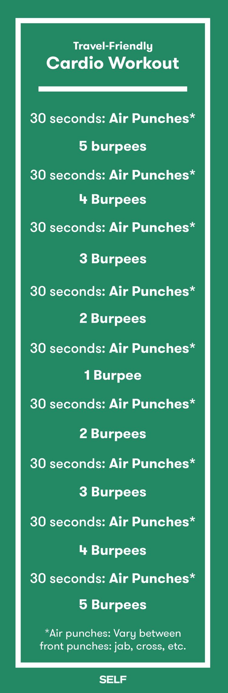 3. START A BUSY DAY WITH THIS CARDIO BLAST WORKOUT IN YOUR HOTEL ROOM.