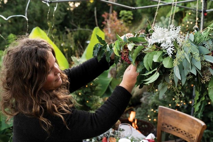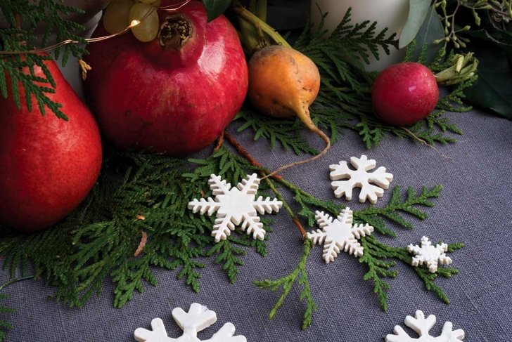 The star of any tablescape is its centrepiece. Start with a base, such as a tray, for an elegant look or a wooden crate for a rustic, natural look. Fill it with your choice of decorations, such as vases or jars filled with pinecones or ornaments; holly, DIY dried oranges, or cranberries; cedar boughs and/or other greenery; candles; and even mini living evergreen trees. Alternatively, use greenery to create a garland table runner along the length of the table.