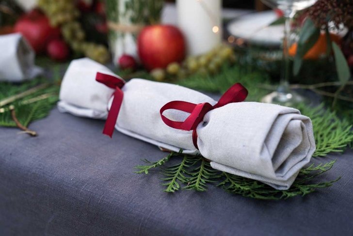 Homemade placemats can be made from a wide variety of materials, such as linen fabric, wooden plaques, greenery, burlap, cork, or even sturdy paper decorated with stamps. Consider involving the kids! Then complete the look by adding plates with a cloth napkin in the centre topped with a pinecone, cinnamon stick and dried orange, or piece of holly.