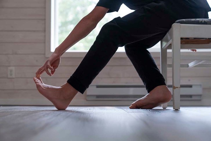 Stretching both your plantar fascia and calves can relieve and prevent plantar fasciitis—and this toe stretch exercise is one way to do this.