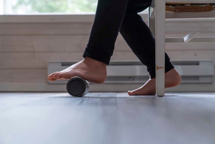 - Roll your foot forward and backward over the object for 2 to 5 minutes.