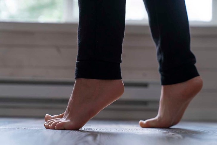 This toe-walking exercise works to support the strength and mobility the foot and calf muscles, plantar fascia, and Achilles tendon, as well as encourage a range of motion in the ankle.